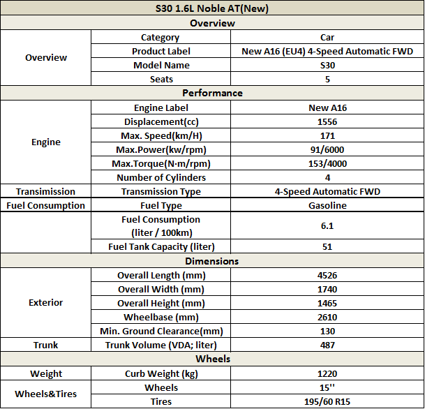 To meet all your demands, the S30 brims with driving and control technologies including the A15 VVT engine with new-generation 4AT transmission, intelligent interaction system with 7’’ LCD screen, reversing camera, reversing distance display, GPS navigation, remote control key-locating function and EPS (A15) system.